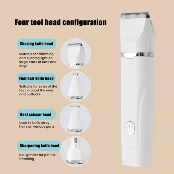 This versatile clipper set features a four-in-one design for comprehensive pet care. From nail polishing to shaving and hair trimming, it meets all grooming needs. The multi-functional blade allows for precise trimming of different areas, enhancing your pet's overall beauty and health.
