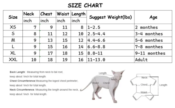 Note: All these size recommendations are only applicable to hairless cats,such as Sphynx, Devon Rex, Cornish Rex, Peterbald & Abyssinian Cats